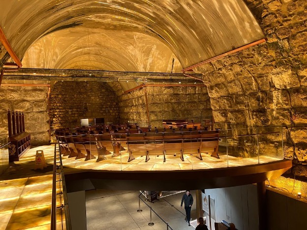 We walked around the old city, getting a tour from our guide, and then sat down at a coffeeshop to talk as a group. For 90 minutes, the 13 of us had a deep conversation, getting vulnerable with each other and sharing different thoughts. It was truly the highlight of the trip. We wrapped up our conversation and headed back to the Kotel to tour the tunnels beneath. It’s amazing to go underneath the Kotel and see how King Herod actually built it. There are original Herodian stones, more than 2,000 years old, in pristine condition. We stood on original streets from more than 2,000 years ago. There is a place underneath that is the closest we can get to where the ‘holy of holies’ was. It’s a special spot reserved for women and it was very powerful to see one woman deep in prayer and later on, a group of high school girls come to pray there. There was also a new synagogue built in the tunnel area that was simply awe inspiring. The picture I took doesn’t do it justice.