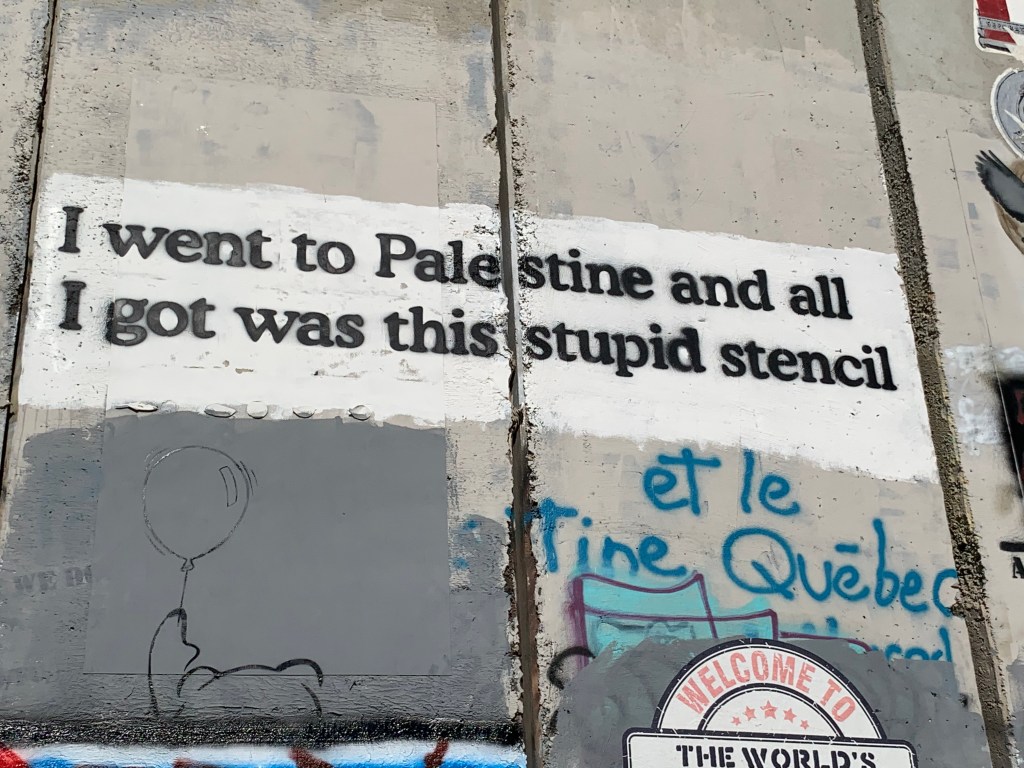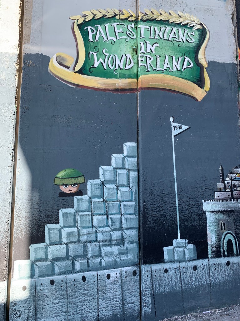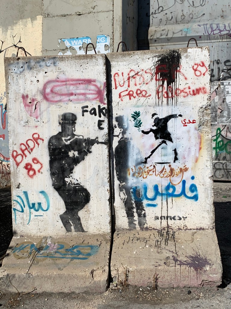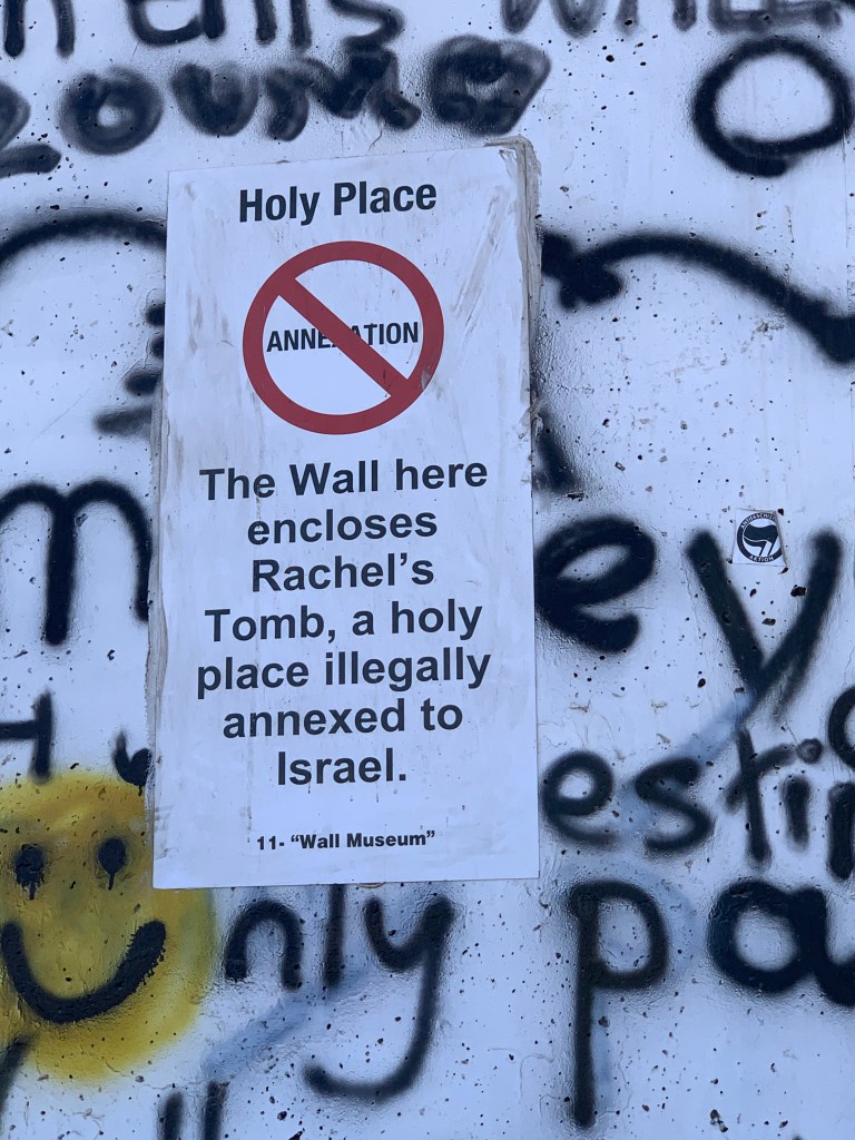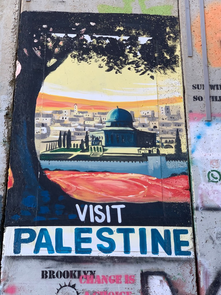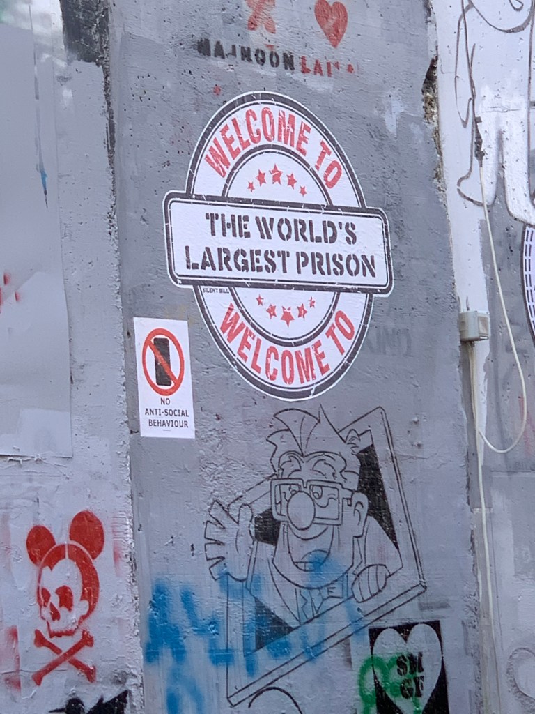 Our day began by going through checkpoint 300. This is the main checkpoint to get from Bethlehem into Jerusalem. While we could have driven through, having the experience of walking through was important, even though as a group of Americans going through at 9 am would make it not a true experience. As we walked in and got it line, we left everything other than passports on the bus. This is because historically things have been ‘lost’. It was a privilege we had that Palestinians don’t. After passing through security uneventfully we got in line. It was slow – like when I don’t have TSA Pre at the airport. It became easy to imagine a packed hall and what the delays can be like. As we got near the front, a security officer seeing us as a group of Americans waved us over and waved us through. Some Palestinian women came over with us and were summarily dismissed and sent back to the longer line. We didn’t even need to show my passport. Talk about privilege. It was very disappointing to get that special treatment.