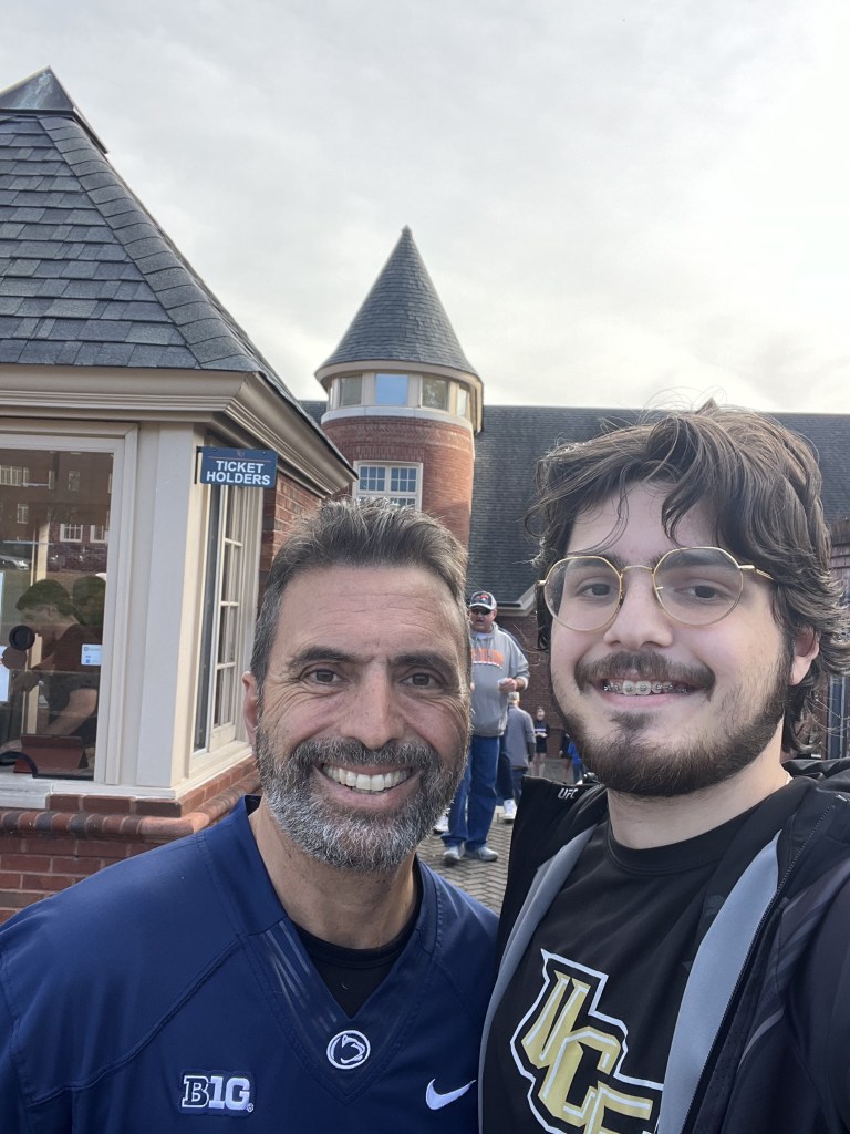 My dad, Evan and me on the field at Ben Hill Griffin stadium before a game during Evan’s football recruiting. One of my treasured memories as I watched my dad kvell over his grandson.