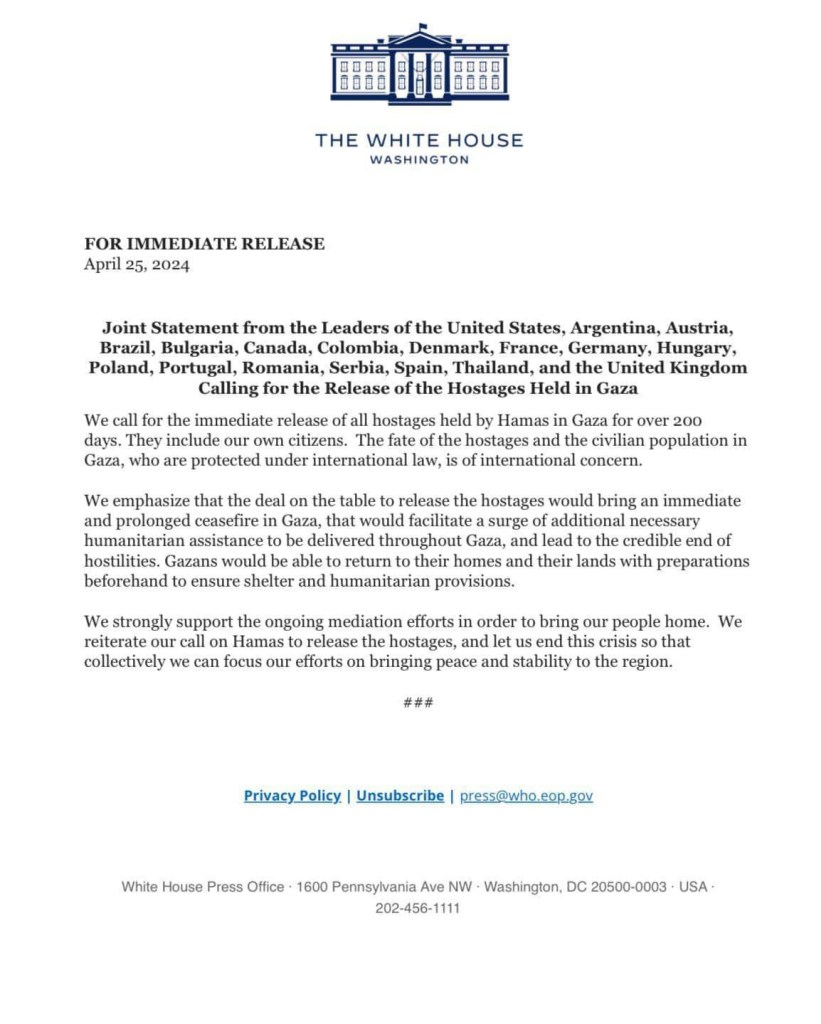 The Columbia University President set a 2 pm deadline for the end of the encampment and then let it pass with no consequences. Senator Bernie Sanders called the war “an illegal war”, forgetting or not caring that Hamas attacked Israel on October 7th, murdering more than 1200 civilians, kidnapping more than 250 civilians and still has over 130 hostages. A number of members of Congress are calling for the federal funding to be removed from the Universities that aren’t protecting Jewish students. The body of an Israeli hostage was discovered near Gaza, somebody killed on October 7th that was thought to be a hostage. At UCLA, an anonymous group built a giant screen with loudspeakers outside the UCLA protest showing footage from October 7 on a loop.