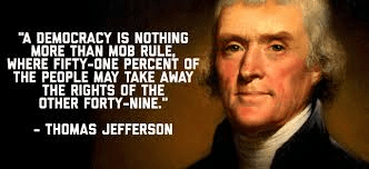We are at a critical time for self reflection. It may be too late for the election in November as the candidates are set. I hope we will all reflect on yet another quote from Thomas Jefferson about our government and in the elections that follow, remember that we the people have the power. The government only gets its power because we give our consent. We want better but until or unless we are going to demand better and take action to get what we want, we certainly are getting what we deserve. Jefferson painted a picture of an America that could be wonderful and alos one that could result in the taking away of the rights of 49% of our population. Which is the country you want to live in? Which is the country you are willing to fight for?
