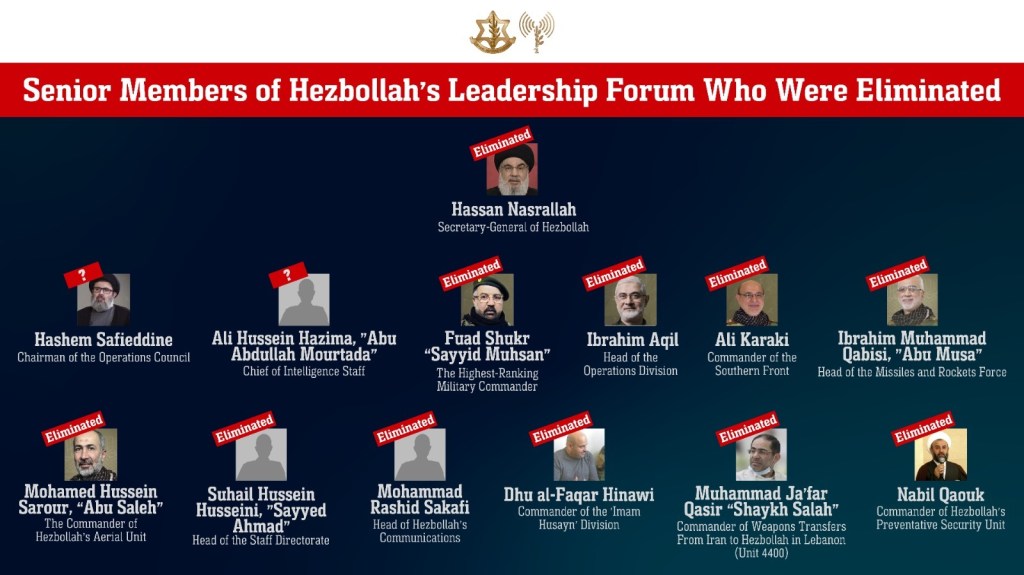 Israel has been targeting the leadership of Hezbollah and Hamas for a while now and eliminating them to destroy the infrastructure. While the world said this wasn’t possible, Israel has once again shown that what the world says is not possible, they will make happen. The Hezbollah leadership has been decimated. Not only have they eliminated Nasrallah, they eliminated the next two successors to him. As the chart below shows, the top 3 levels of Hezbollah’s leadership has now been eliminated. This is how you defeat terrorism.
