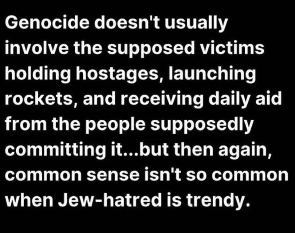It’s easy to yell “Genocide, Genocide, Genocide” while the other side tries to explain using a 1,000 word essay why it isn’t. Every time they take a breath during the essay, another “Genocide” is shouted. They openly say that the definition is flexible. It’s ethnic cleansing even though Israel tried to get the citizens not involved with Hamas and/or October 7th moved to the Sinai so they wouldn’t be harmed and it was Egypt who said no. It’s easy to say Israel is starving the people of Gaza and there is a famine even when unprecedented aid is being provided by Israel and it is Hamas stealing the food, shooting the Gazan people trying to get the food, and selling the stolen aid on the black market. If you want to understand how this is historically unprecedented, read this piece by John Spencer. They cry collective punishment when it is Hamas punishing the people of Gaza. They cry apartheid when Arabs have more rights in Israel than any other country in the region.