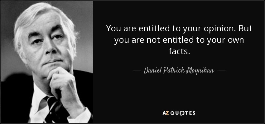 That’s a major part of the problem. People read things that confirm their bias. They watch the news that is clearly far left or clearly far right. They never read things that challenge their beliefs or their world view. It goes back to the saying “my truth”. There isn’t ‘my truth’. There is only ‘the truth’. As the late, great Senator Daniel Patrick Moynihan said, “You are entitled to your opinion. But you are not entitled to your own facts.” In today’s world, people are choosing their own facts.