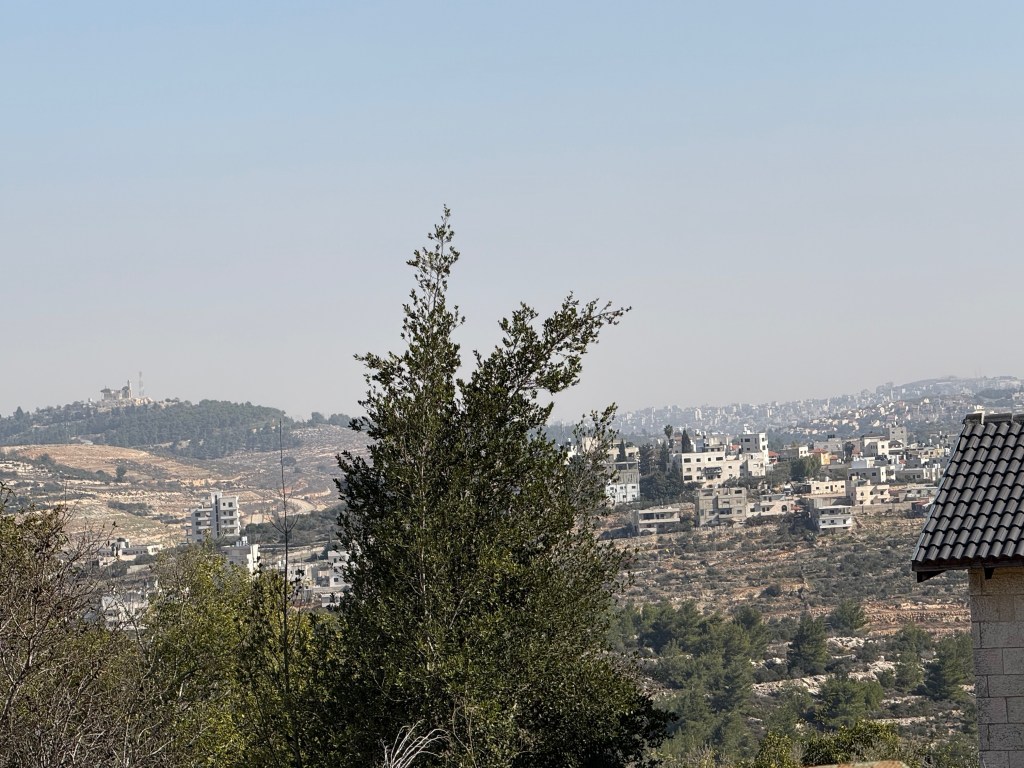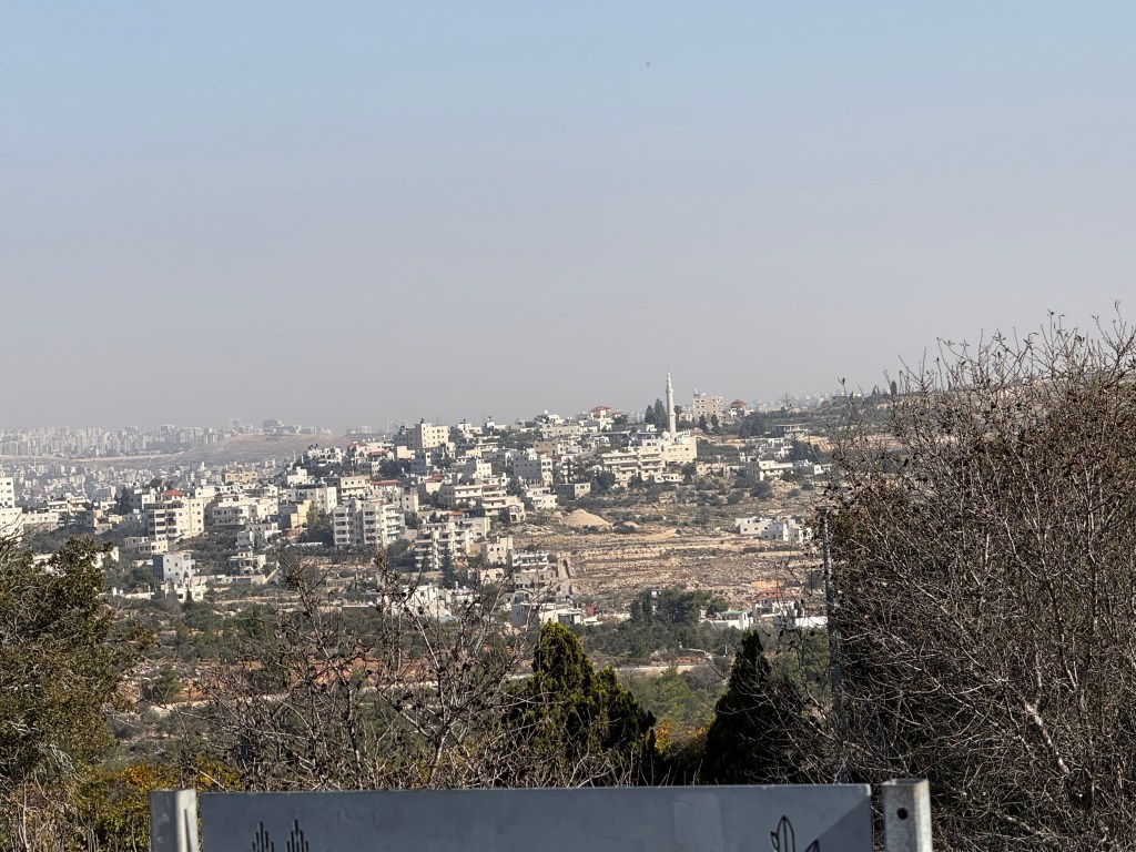 The villages in the background of these photos are looking into Judea/Samaria/West Bank (names are political so I use them all). Deep in the background is Ramallah. Up front are Arab villages. Off to the right is Jerusalem. You get a feel for how close everything is. Before the second intifada (Sept 2000 – Feb 2005) it was common to walk easily between the villages in Judea/Samaria/West Bank and towns like Har Adar. Due to the violence of the second intifada, Israel needed to install the security fence to stop terrorists from coming through and becoming suicide bombers, murdering innocent civilians. The cost of this was that innocent civilians in those villages now had to go through checkpoints, needed approval to enter Israel proper, and had their lives made more difficult. After October 7th, it became more difficult. Just last summer we were able to climb up the tower at the scenic lookout to get a high view of the area. Today the lookout is padlocked and we couldn’t enter. Security cameras were installed since July 2024 to monitor the area. Our reality makes me sad.