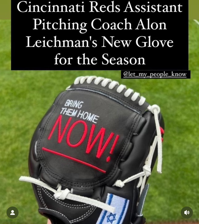 Write and call your member of Congress and your Senators. Your voice matters. Every member of Congress that I have spoken with, every Senator I have met, have said how much those calls, emails, and letters mean. You have a voice, use it. If you think it doesn’t matter or people don’t notice you are wrong. I get asked about the number on the tape or my dogtags all the time. Be inspired by Cincinnati Reds Assistant Pitching Coach Alon Leichman and his baseball glove for this season. He is making a powerful statement, “Bring them home NOW”. You can join in making that powerful statement of support and stand up to the Jew haters who want us all gone.
