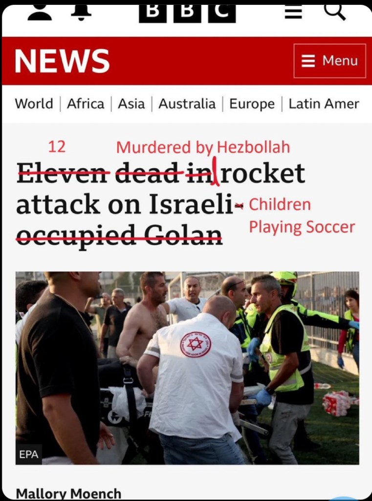 What brought me to my breaking point this week? The reaction to Hezbollah bombing a Druze village where kids were playing soccer. The Druze are are an Arab and Arabic-speaking esoteric ethnoreligious group from West Asia who adhere to the Druze faith, an Abrahamic, monotheistic, syncretic, and ethnic religion. They are citizens of Israel and serve in the IDF. They love Israel and are a part of Israeli society and culture. When anybody calls Israel an apartheid state, the Druze are one perfect example of how that is a lie.
